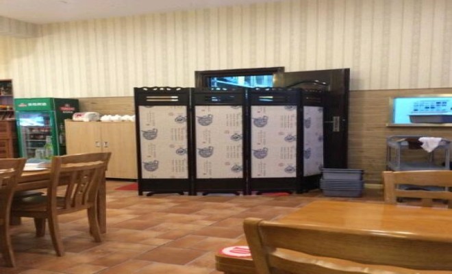 店外的招牌格外醒目。通体的大玻璃窗,通红的桌布,红色的灯笼,使窗内窗外融为一体,在视觉上扩大了店铺的面积。适合朋友聚餐的场景